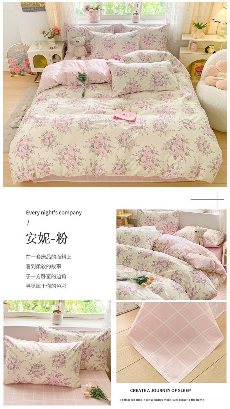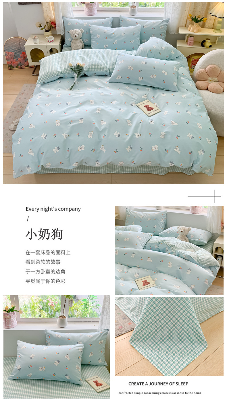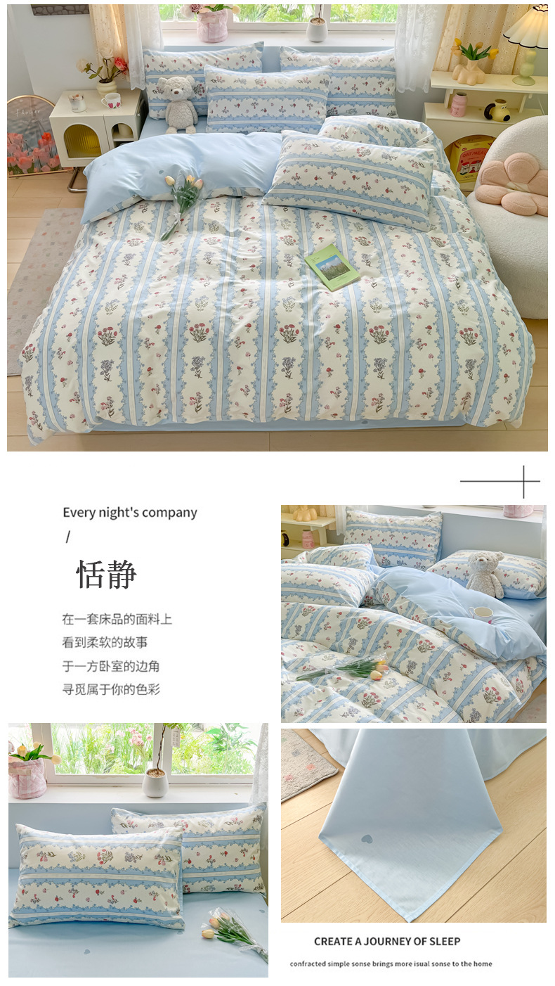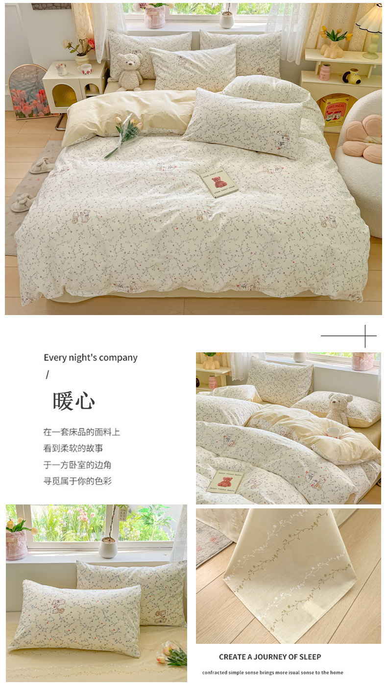 2024 New 13372 Pure Cotton Four-piece Set Pure Cotton Small Fresh Nordic Style Bed Sheets And Fitted Sheets 1.2m Three Pieces
