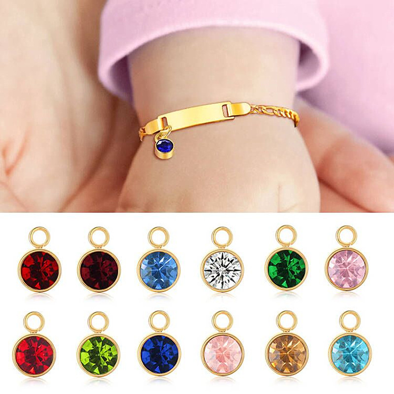 DIY Name Birthstone Bracelet Personalized Stainless Steel English Letters Children's Baby Birth Commemorative Gift